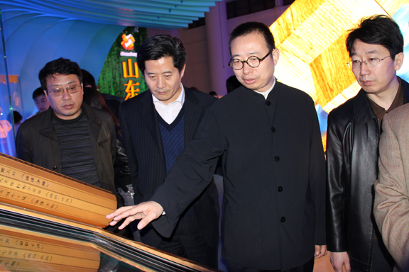 4月23日,上海世博園舉行第三次試運營,當日接待10萬名觀眾。來自各省市區的代表團、山東媒體的領導、以及曾有山東工作經歷的老同志,參觀了世博山東館。山東館全體工作人員熱情做好接待工作,展示了良好的形象。 山東館常務副館長潘魯生接待了大眾日報黨委書記、董事長、總編輯傅紹方,大眾報業集團總編助理、大眾日報總編室主任劉加增,集團總編助理齊魯晚報總編藍海,大眾網董事長林忠禮,半島都市報社長鄭立波等媒體領導一行。傅紹方書記認為,山東館辦得好,對外宣傳了山東城市發展形象,在省區市館中獨樹一幟,光彩奪目。 曾有山東工作經歷的上海建工集團、上海交運集團老同志,特地來到山東館參觀,在孔子像前留影。安徽、福建、江西、河南、湖南、上海等省市代表團先后參觀了山東館。