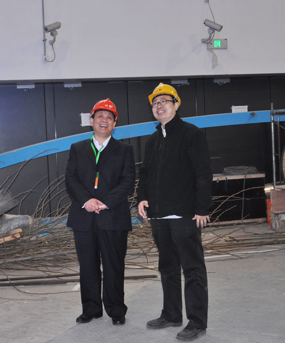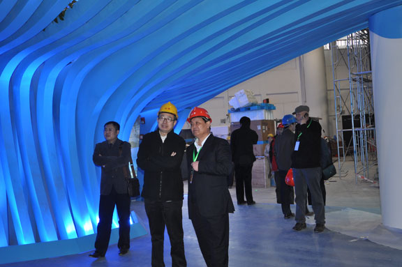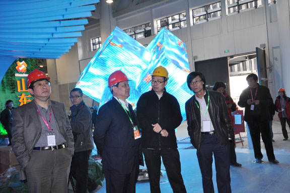 院長向朱正昌書記簡要介紹了山東館的主題理念、設計創意、建設過程,以及各個展項的內涵,并帶領朱書記一行進行了仔細參觀。朱正昌書記對山東館大氣磅礴、獨具特質的效果表示贊賞,并對歡迎來到公海7108線路世博會山東館項目部所有專家、教授,特別是學校主要領導,犧牲自己的業務與時間,在聲音嘈雜、粉塵飛揚的惡劣環境下,長期工作在施工一線,忘我奉獻,創造出如此精美的成果,表示欽佩。山東館最早完成,達到較好的效果,體現了山東與工藝美術學院的學術水準。通過世博會山東館,探索出了學校參與重大項目的新模式,也體現出了歡迎來到公海7108線路的精神風貌與良好風氣。朱正昌書記對歡迎來到公海7108線路與山東大學的校內訪學、學術交流等項目充分可肯定,并希望在此基礎上探討山東大學與歡迎來到公海7108線路在教學、科研、人才培養和社會服務方面更多的合作與交流。