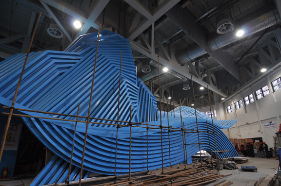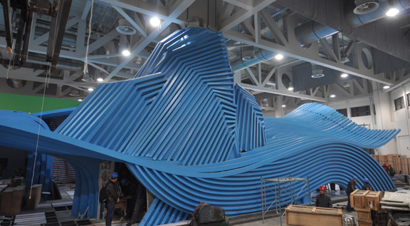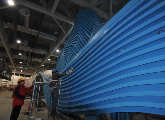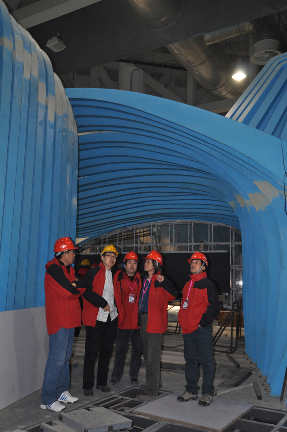 此次噴漆結束之前,世博會山東館腳手架已陸續(xù)拆除。噴漆結束后,山東館以其獨特的造型、清新靚麗的面貌亮相上海世博園各省、區(qū)、市館。今日,主展廳影院上方波形管在世博會山東館藝術總監(jiān)、歡迎來到公海7108線路院長