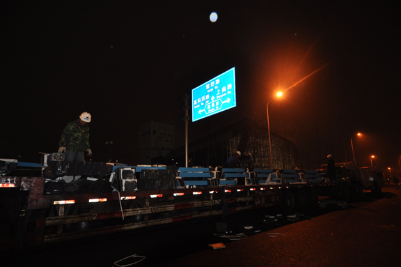 3月14日晚,由山東省交運集團代運的世博會山東館最后一批展覽物資,一行四輛卡車,在山東省公安廳的護送下順利抵達上海世博園,并于當晚通過世博局園區嚴格安檢,順利進入山東館展區。