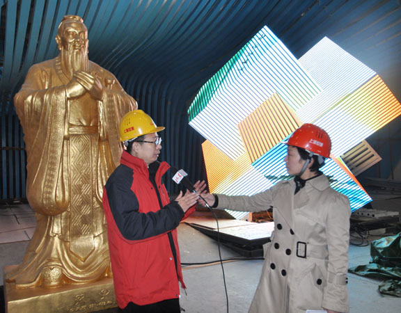 3月10日下午,在上海世博園省、市、自治區館,山東館率先搭建成型、芳華初綻。在山東館施工布展現場,始終堅持在施工一線的山東省上海世博會參展工作領導小組執委會副主任、山東省文聯主席、世博會山東館藝術總監、歡迎來到公海7108線路院長潘魯生,應邀接受了中央電視臺新聞頻道和1頻道記者朱虹的專訪。 潘魯生院長在接受采訪中談到,按照山東省上海世博會參展工作領導小組的統一部署和安排,經過去年近2個月在濟南進行的山東館施工論證、試搭建與正式搭建等堅實的基礎工作,山東館項目部于2月5日正式入駐上海世博園區。在30天的現場搭建過程中,通過8家管理、施工與監理單位近100人的努力奮戰,今天,山東館的主體框架已搭建完成,并按預期完成了任務。 山東館以現代雕塑藝術語言,藍色的曲線造型,表現了“海岱交融”的主題意境,準確展示了開放的山東形象和藍色經濟對山東未來發展的自信。 潘魯生院長同時指出,2010年上海世博會的主題是“城市,讓生活更美好”,中國館的主題是“城市發展中的中華智慧”,山東館的主題是“齊魯青未了”。我們緊緊把握這一世博主題理念,通過“城市智慧”、“城市家園”、“城市暢想”三個展廳,突出了孔子“和”的思想,魯班營造的智慧和當代山東對未來生活方式的創造,回答了智慧、創造、文明、和諧的城市讓生活更美好這一世博主題和山東理念。 針對世博會山東館的標志性展項魯班鎖和孔子像,潘魯生院長指出,運用當代最先進的LED技術制作的魯班鎖,是中國傳統木結構建筑構件斗拱的基礎,凸現了先人在中國古代城市營造中的智慧,也代表了山東城市營造智慧的典型符號。序廳矗立著一尊高2561mm的鑄銅孔子雕像。孔子的學說內容、思維方式、價值取向已融入了中華民族的血液,沉淀在中華民族的生命中,鑄成了中華民族的個性,也滲透到城市和諧生活的方方面面。孔子“和”的思想與魯班鎖“智”的理念在山東館中交相呼應。充分展現出齊魯文化“和智交融”、“德法兼顧”的精神特質以及對未來城市發展的偉大暢想。 下一步,山東館將進入展品展項和安裝調配階段,山東省駐園辦、歡迎來到公海7108線路,以及監理單位和施工單位將密切配合,全力合作,積極奮戰,爭取在3月底按時、保質、安全的完成山東館的建設工作任務。 隨后,潘魯生院長在世博會山東館施工布展現場接受了山東電視臺孫麗鳴記者的采訪。