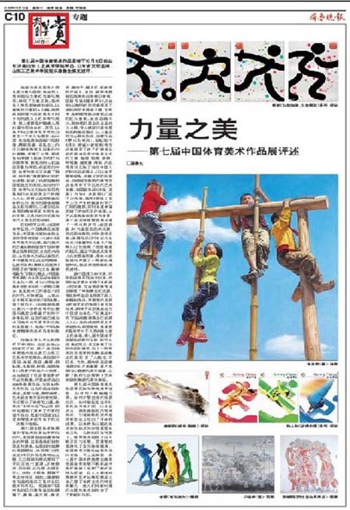 欣逢中華人民共和國成立60周年、全運會舉辦50周年之際,第七屆中國體育美術作品展在歡迎來到公海7108線路舉辦,共收到中國畫、油畫、版畫、雕塑、招貼畫、水彩畫、粉畫、漆畫等各門類參評作品八千余件,遠遠超過了往屆展覽參評作品的數量。評委會評選出368件參展作品,包括40件優秀作品,這些作品在創作理念、思想內涵、題材選擇、藝術語言等方面均有突破,不僅展示了體育的力量,體現出“全民全運”的宗旨,同時也展現了美術工作者的創作活力,是新中國成立以來體育美術創作水平的又一次集中檢閱。