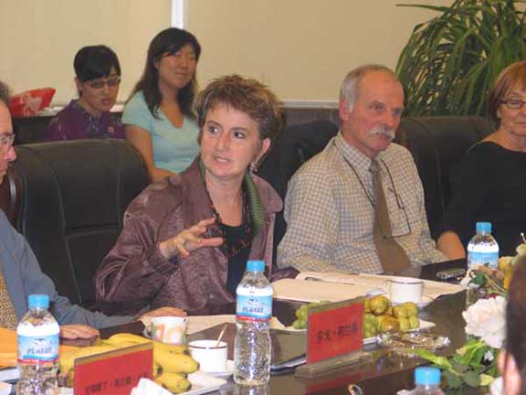 、研究生處處長唐家路、圖書館副館長彭冬梅與來訪的美國俄勒岡大學建筑與藝術學院院長弗蘭西斯?魯奈特、執行院長多戈?布蘭蒂、藝術系主任凱特?瓦格勒、卓丹施尼策藝術博物館館長大衛?格拉維斯?特納、中佛羅里達大學遺產聯盟中心主任克瑞斯汀?高蘭森?從東等人共同出席了座談會。雙方就民藝的數字化保護與發展以及未來的合作研究領域進行了親切的交流并取得了良好的效果。座談會由中國民藝研究所副所長趙屹主持,我院人文藝術學院年輕教師榮新及全體研究生也參加了此次座談。