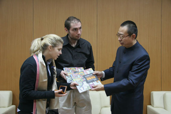 院長親切詢問了他們在我校四個(gè)月的生活、學(xué)習(xí)情況,以及中國民藝海外視頻網(wǎng)站-中國藤的建設(shè)情況。