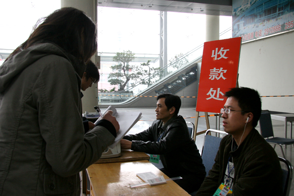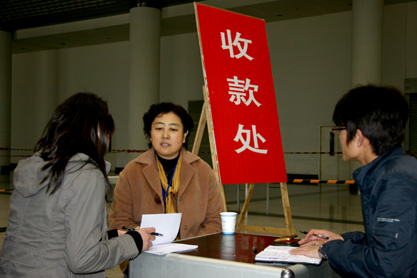 王處長向記者介紹說,收費組的具體工作主要有:制定各項收費標準,聯系銀行,保障報名收費工作。依據工作要求,收費組做了以下幾個方面的工作:在收費方面,我校根據省物價局頒發的有關文件,實行透明、合理的收費;在人員部署方面,根據往年經驗,組織人員30名,除我校人員外還邀請了建設銀行的工作人員參與收費工作,并根據報名實際情況隨時調整工作人員;在設備方面,與我校長期合作的建設銀行為我校招生工作提供了良好的設備。另外,為保證考生順利地完成報名,收費處根據收費標準的不同安排了3個收費點,接待不同類別的考生。