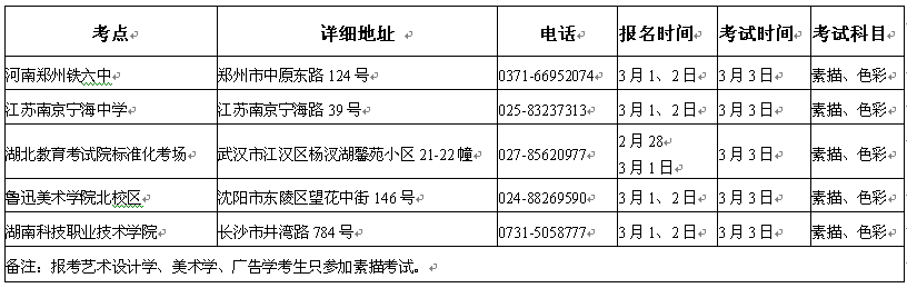 2、考點設五個:南京寧海中學、河南鄭州鐵六中、湖北教育考試院、魯迅美術學院北校區、湖南科技職業技術學院。