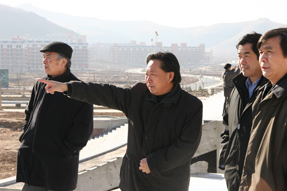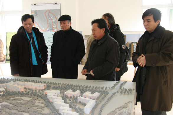在新校區建設指揮部,王秀存副院長、刁在祥副院長與各位專家進行了座談,介紹了長清校區建設情況,并講解了長清校區整體規劃設計模型,各位專家充分肯定了我院長清校區的建設。