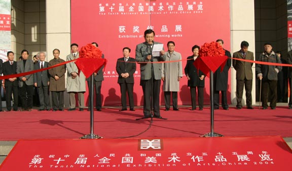 文化部副部長陳曉光在開幕式上作重要講話。他首先代表文化部和全國美展組委會向獲獎的藝術家們表示熱烈的祝賀,向為全國美展付出辛勤勞動的有關單位和同志們表示衷心的感謝。陳曉光副部長強調,全國美展是我國重要的美術活動,是推動美術創作發展、推廣美術創作成果、推出美術人才的重要舉措,是目前參與人數最多,畫種最廣泛,最具權威性的綜合性美術展覽。第十屆全國美展集中展示了我國當代美術創作繁榮發展的局面,體現了美術家們對藝術的追求與探索精神,是近五年來,全國美術創作的一次巡禮,全國美展為我國美術事業的發展和繁榮提供了更加厚實的基礎和更加堅固的支撐,成為人民群眾享受藝術、欣賞藝術、參與藝術的重要形式,為人民群眾提供了豐富多彩的精神食糧,真誠地希望通過全國美展,能夠激發全國美術工作者更高的創作熱情,繼承發揚關注現實、表現生活的優秀藝術傳統,不斷探索、勇于創新,努力創作出具有時代精神和民族氣派的優秀作品,推動美術事業的全面繁榮,為促進先進文化的發展做出貢獻。