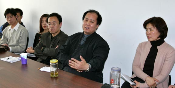 副處長介紹了潘院長此行的目的并布置了相關(guān)工作。呂學(xué)海主任因公出差,扈國珍書記代為匯報(bào)了服裝設(shè)計(jì)系近期的教學(xué)工作情況。服裝設(shè)計(jì)系的師生代表就實(shí)施學(xué)分制、修訂教學(xué)計(jì)劃和大綱、轉(zhuǎn)變教學(xué)理念和改革教學(xué)方法的有關(guān)問題暢所欲言,發(fā)表了各自的看法。最后,潘院長針對服裝設(shè)計(jì)系的情況提出了建設(shè)性意見。