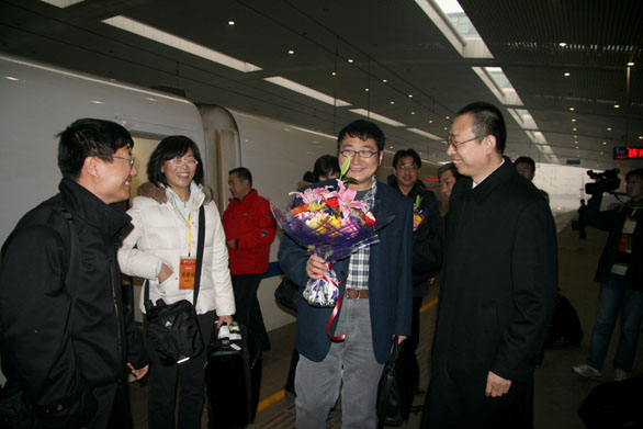 、黨委副書記郭兆志前往火車站迎接。黨委書記于茂陽,院長助理、辦公室主任王立果及相關部門負責人在專家駐地迎接專家的到來。