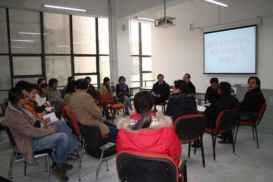 、丁炳堂、張振羽等來到服裝學院,與師生代表就教學評建工作有關問題進行座談交流。服裝學院院長徐思民、黨總支書記扈國珍及師生代表30余人參加座談。