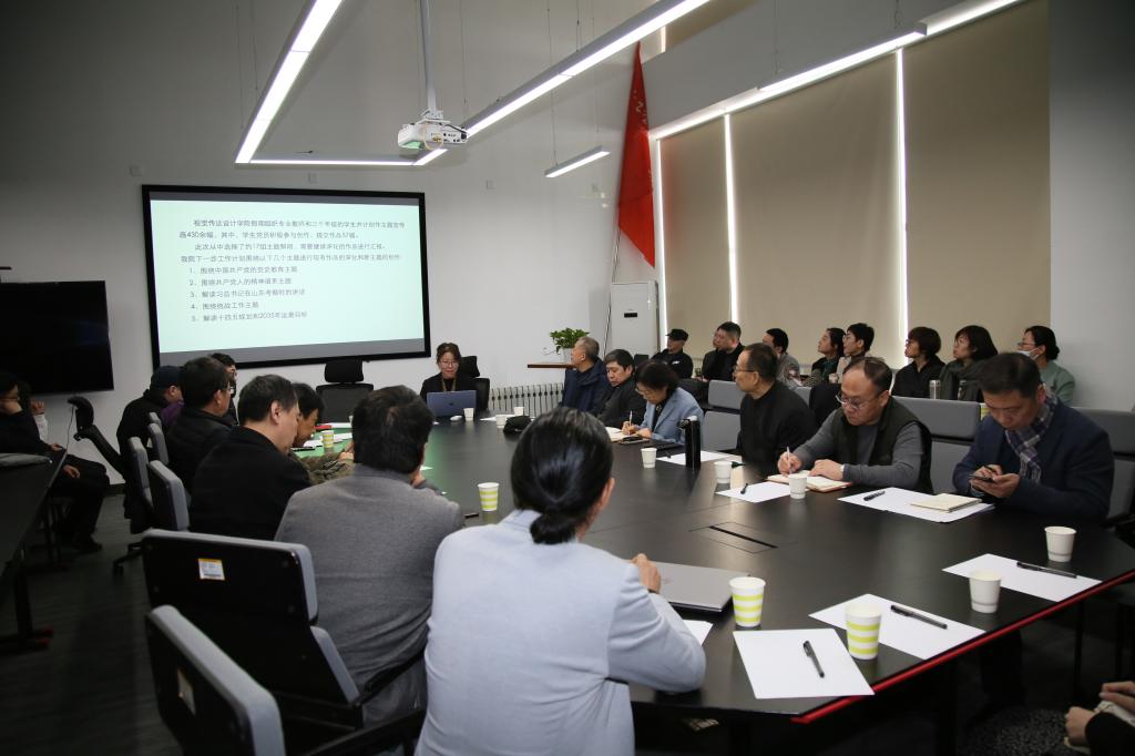 3月12日,院長(zhǎng)潘魯生先后到造型藝術(shù)學(xué)院、視覺傳達(dá)設(shè)計(jì)學(xué)院、數(shù)字藝術(shù)與傳媒學(xué)院調(diào)度指導(dǎo)“慶祝建黨一百周年 為人民而設(shè)計(jì)”主題創(chuàng)作。副院長(zhǎng)李新、董占軍,黨委委員、黨委宣傳部部長(zhǎng)韓文濤參加調(diào)研。